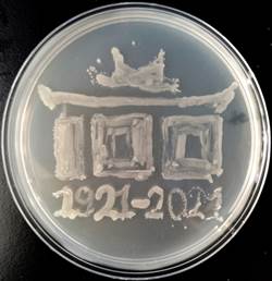 (平板作画二等奖作品——献礼百年:作者以大肠杆菌为画笔,在牛肉膏蛋白胨培养基上勾勒以厦门大学群贤、建南楼群等嘉庚建筑风格标志,呈现出厦门大学百年办学历程)