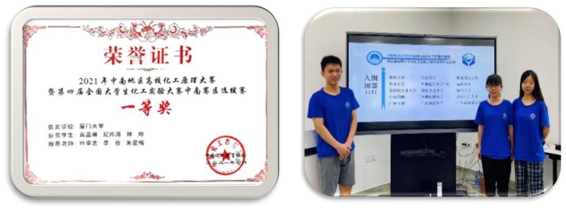 924-26日,东方仿真·欧倍尔杯第四届全国大学生化工实验大赛全国总决赛在南京工业大学举行。从全国六个赛区近300支队伍脱颖而出的77所高校参赛队伍在线上进行为期两天的激烈角逐。我校派出化学化工学院化学工程与生物工程系2018级化学工程与工艺专业黄晶琳、纪炜涛和林婷三位同学组成厦门大学“临危不惧”队参加比赛。团队在叶李艺、李薇、朱爱梅三位老师的精心指导下认真备赛,一路过关斩将,晋级总决赛后在理论知识、仿真操作和实验操作三项环节均有优异表现,最终荣获总决赛一等奖的佳绩。