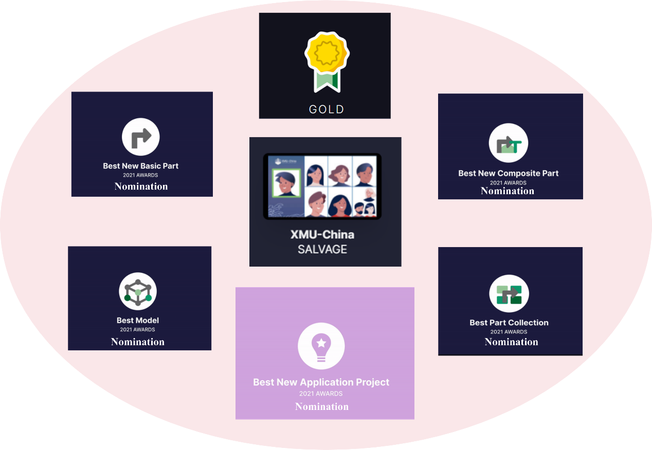 此次比赛中,厦门大学参赛团队收获了建队以来的第十一个金奖。同时获得“最佳新应用奖”(Best New Application Project)的赛道奖提名,“最佳生物砖收集”(Best Part Collection)“最佳新基础生物砖”(Best New Basic Part)“最佳复合生物砖”(Best New Composite Part)“最佳建模”(Best Model)4项单项奖提名。